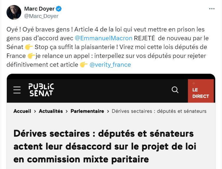 15 Responses to La loi liberticide interdisant le débat scientifique risque d’être définitivement votée par les députés