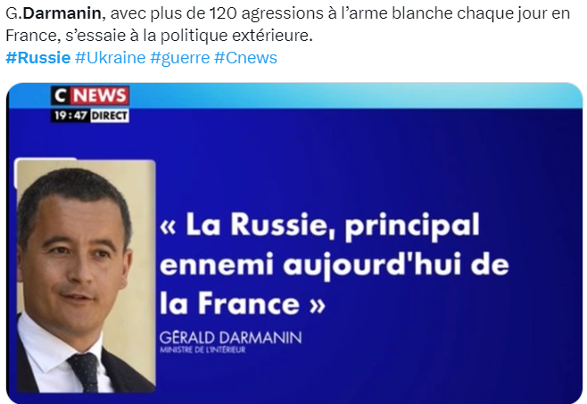 #Darmanin anticipe le désastre des jeux Olympiques: ce sera la faute des Russes