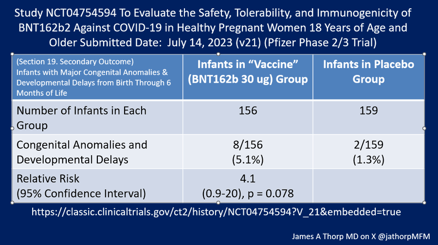 La seconde est publiée dans une revue médicale à comité de lecture à partir d’une base de données gouvernementale totalement ouverte, utilisant la méthodologie de la FDA documentant les violations des signaux de sécurité définis par la FDA (PRR 2 ou supérieur) dans 18 événements indésirables survenus pendant la grossesse (y compris des malformations). Ceci est publié depuis plus d’un an, n’importe qui dans le monde a pu reproduire cette étude