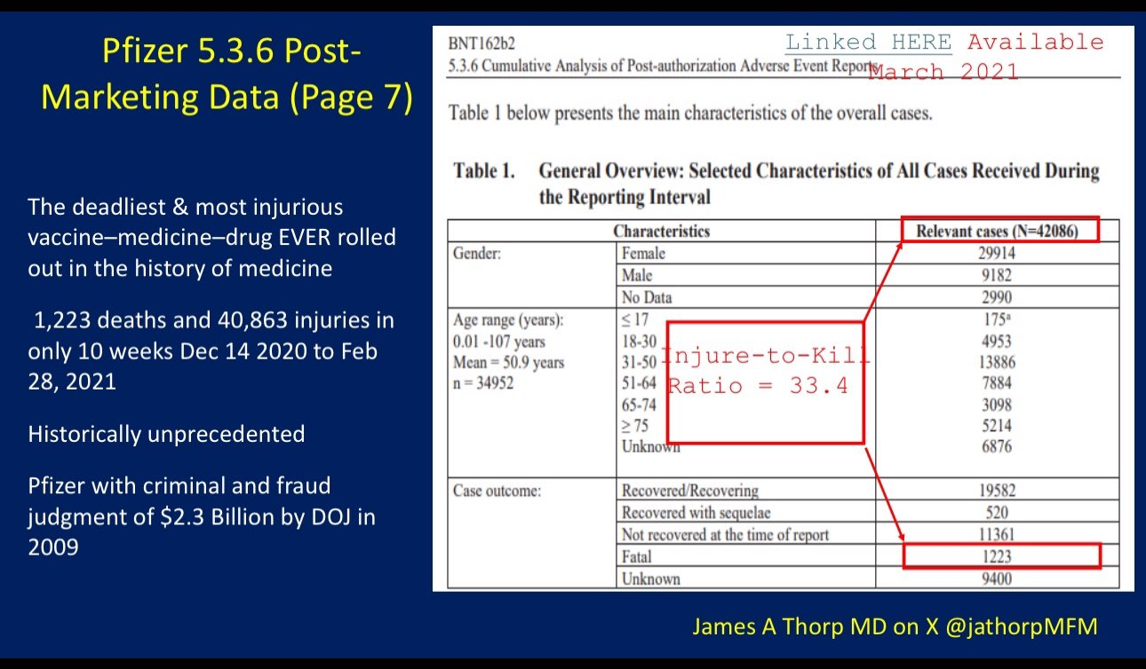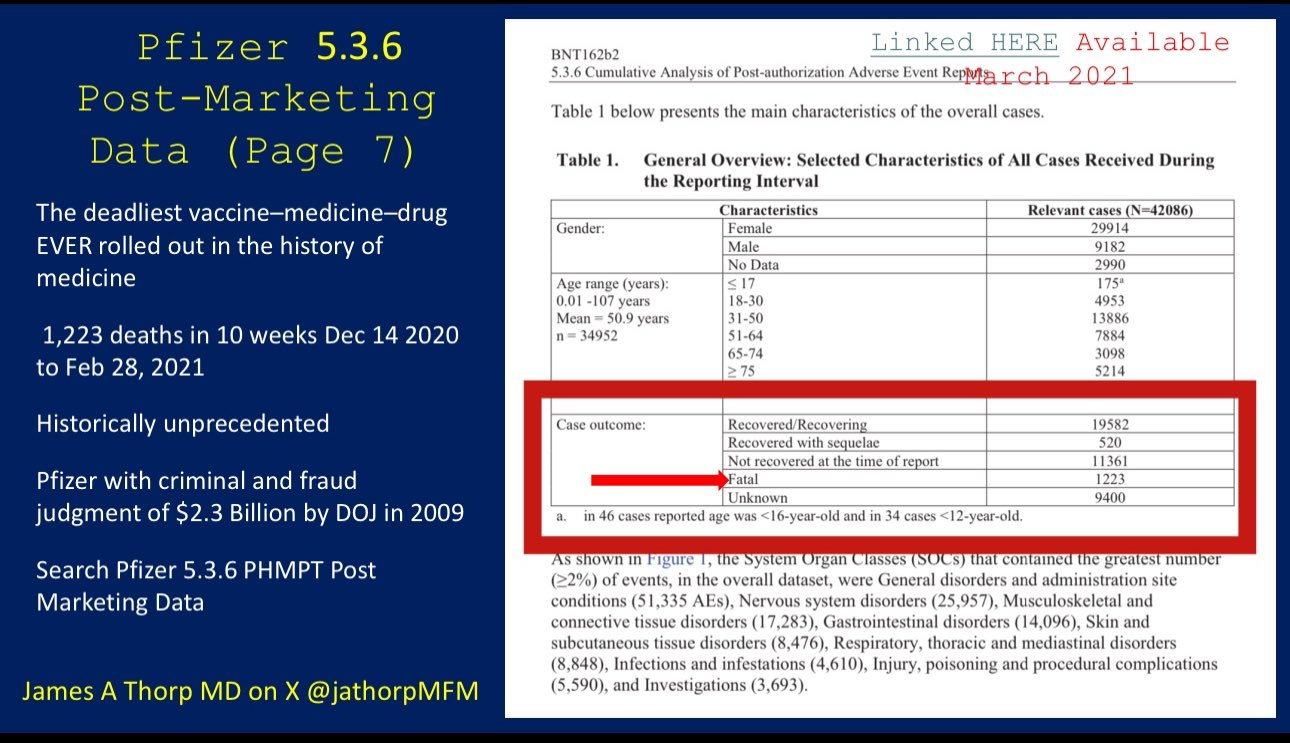 Le premier est Pfizer 5.3.6 https:// phmpt.org/wp-content/upl oads/2022/04/reissue_5.3.6-postmarketing-experience.pdf … qui s’est entendu avec le HHS CDC FDA pour le cacher pendant 75 ans.