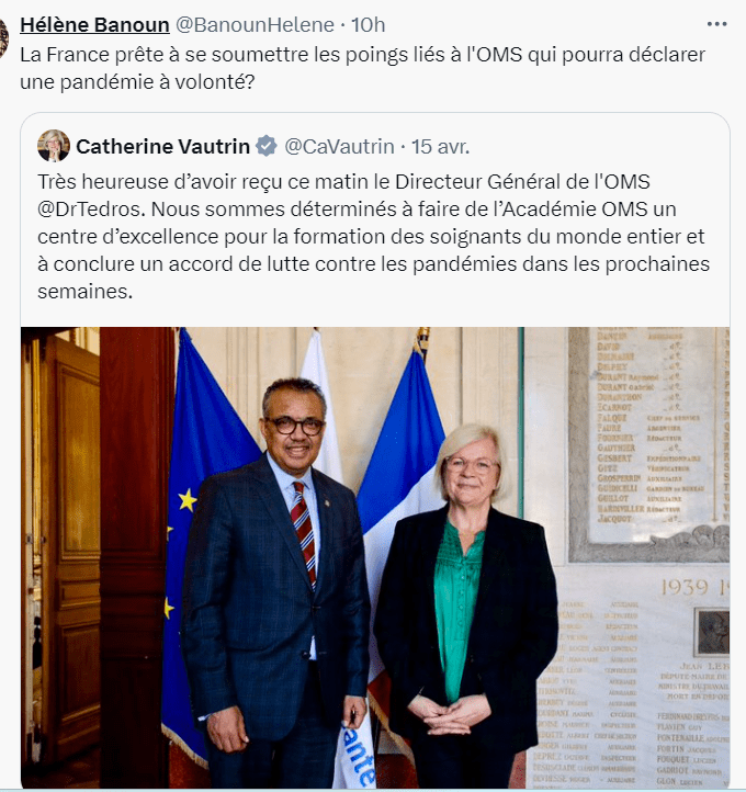 Ce traité pandémique promu par l’OMS est un danger pour les peuples du monde entier. Quand on voit comment ils ont géré le covid on peut craindre le pire pour une autre pandémie…..