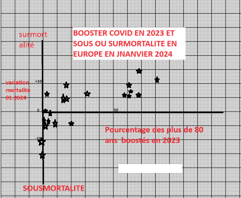 S’ensuivent 3 tableaux (barres vertes) détaillant apparemment cette couverture « vaccinale » (pourcentages de la population observée) puis un tableau censé représenter le taux de mortalité puis un tableau (source Ourworldindata sauf erreur) montrant les taux d’administration de « boosters » par pays.