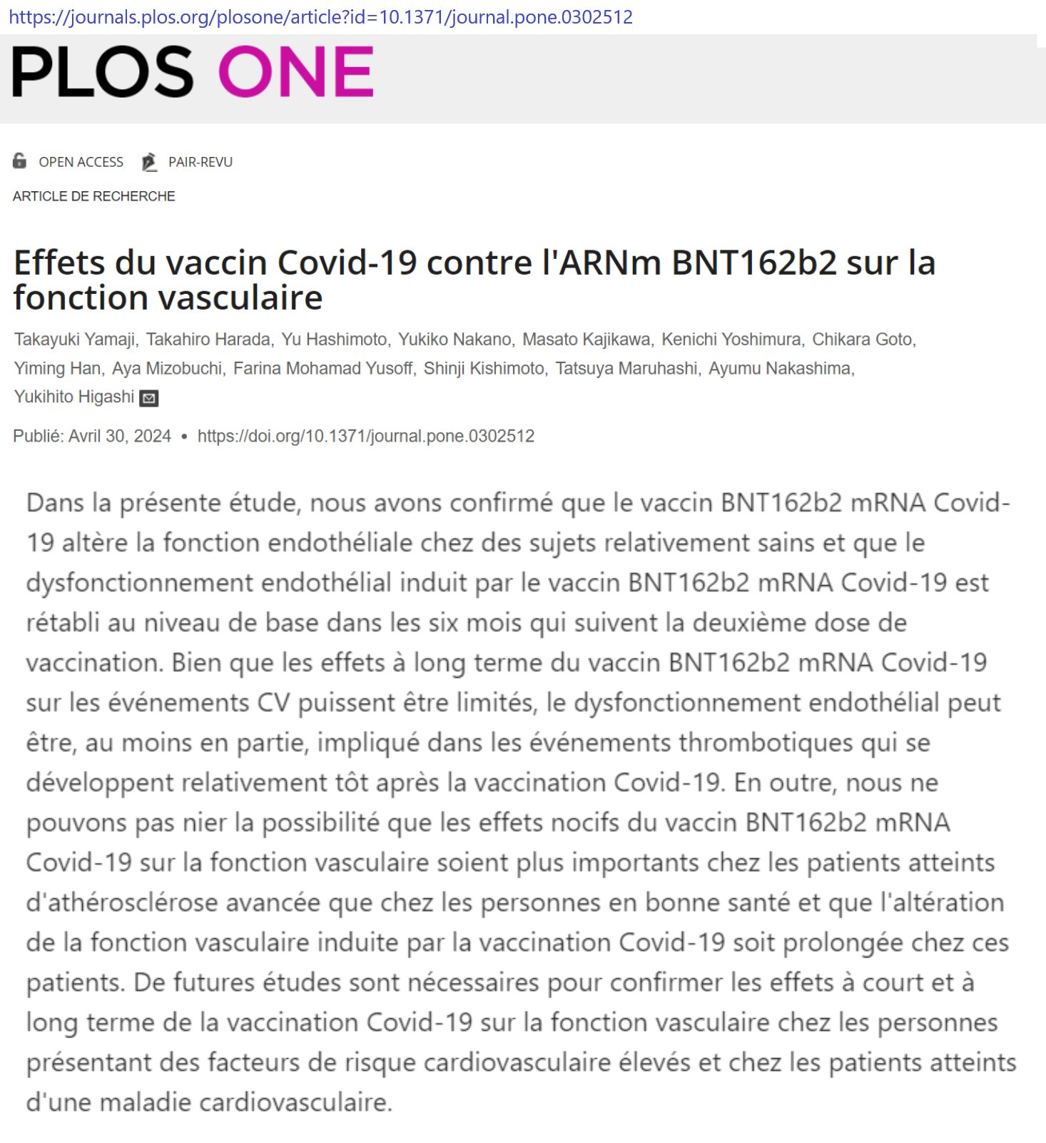 Une étude japonaise publiée après approbation des Pairs confirme les risques de thromboses après le Pfizer . Une preuve de plus de ce crime international impuni