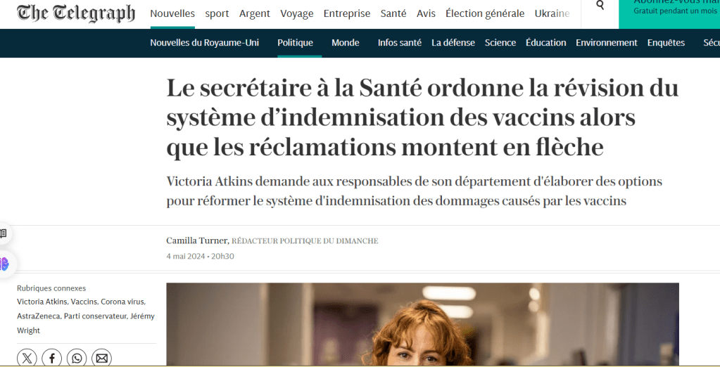 Ledit document juridique a été transmis par AstraZeneca elle-même à la Haute Cour de justice de Londres en février 2024, dans le cadre d’une action en justice collective à son encontre. Et c’est, comme l’a exposé « The Telegraph », « un revirement apparent qui pourrait ouvrir la voie à un dédommagement légal de plusieurs millions de livres ».