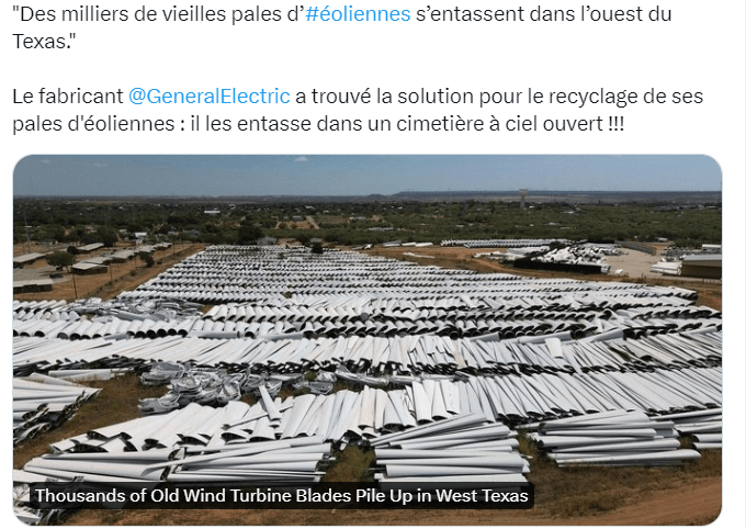 -L’éolienne pollue, pas de recyclage des pales, socle de béton dans le sol ad vitam æternam .