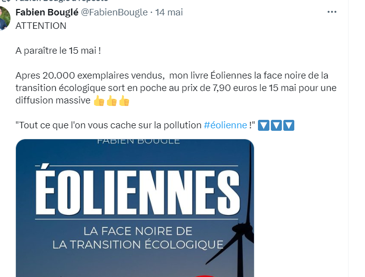 @greenpeacefr soutenir la pollution éolienne. Sur les 20 dernières années, il y a une confusion entre ONG et politique (…).