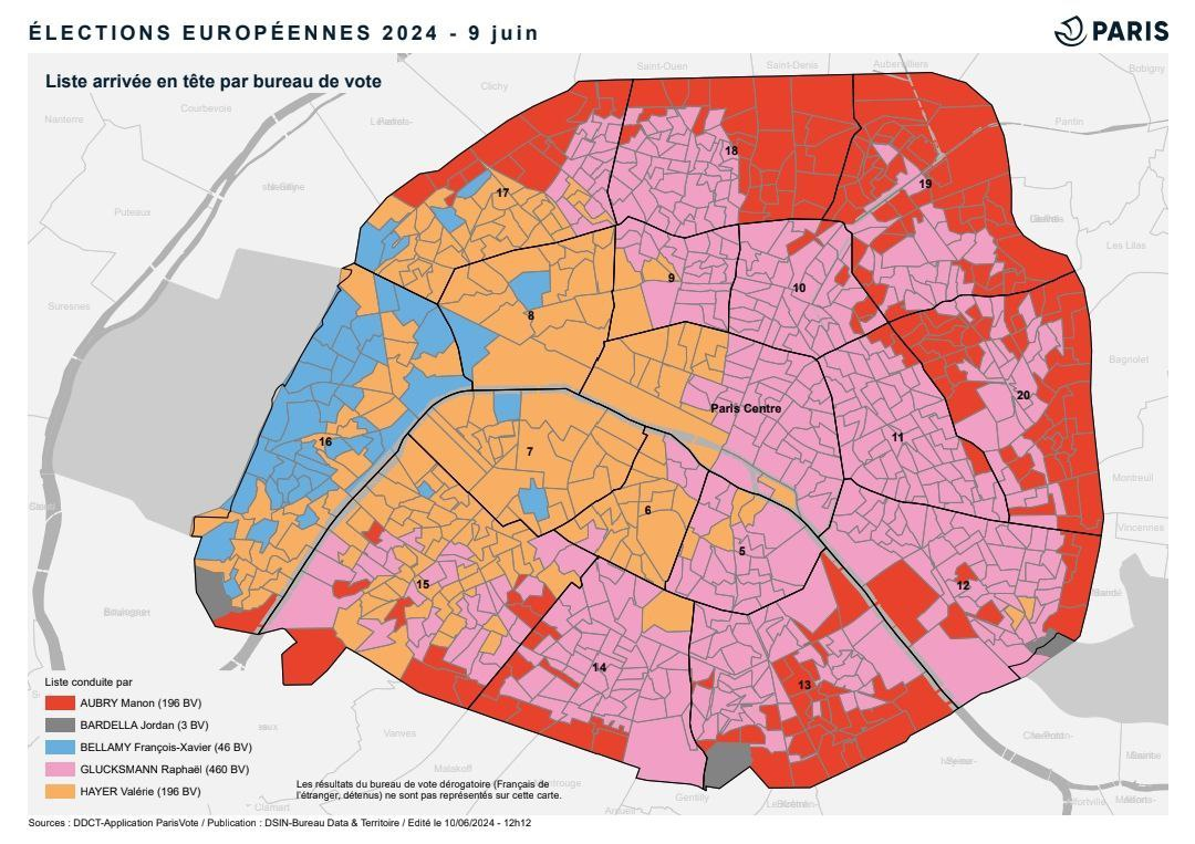 Clivage clair entre le centre aisé/bobo et la quasi-périphérie. En passant, à Bruxelles on a un beau morcellement aussi entre les communes (arrondissements) pauvres (en partie fort islamisées) qui ont voté PTB (copier-coller de LFI) et celles aisées qui ont voté MR (centre-droit de plus en plus macronien) en passant par celles entre les deux qui s’accrochent encore au PS et là aussi la carte vaut mieux qu’un long discours : https://bx1.be/dossiers/9juin-2024/regionales-2024-les-resultats-dans-votre-commune/
