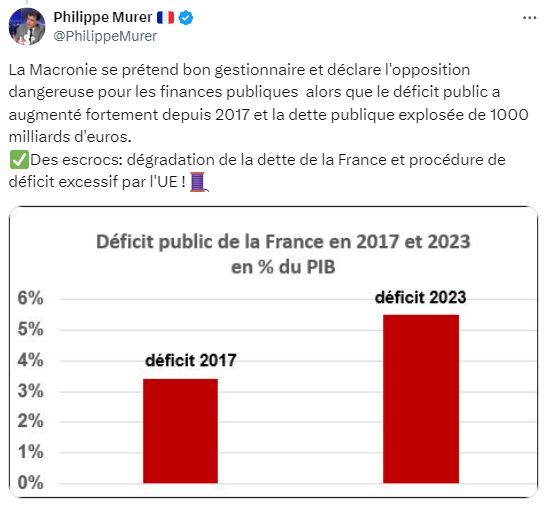 Et même si Bardella ne peut pas tout faire tout de suite, son programme est nettement plus approprié au redressement, financier et social que celui de LFI, Gluckmann et les Verts réunis et qui est peu ou prou celui que nous ont fait subir Macron et sa clique depuis 7 ans. Les graphiques de l’article parlent tous seuls !