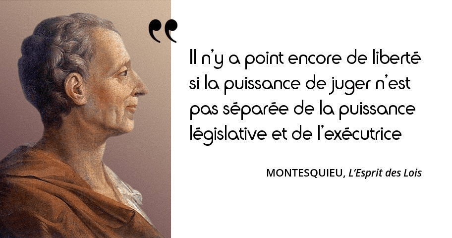 Montesquieu a échafaudé la théorie de la séparation des Pouvoirs dans « De l’esprit des lois » (1748) ; Tocqueville, allant plus loin en observant un premier cas d’application (« De la démocratie en Amérique », 1835), a mis en garde contre la tentation de « tyrannie démocratique » de la majorité. Le premier a trouvé consécration de sa théorie chez les Pères de la Révolution, particulièrement ceux de la Déclaration des Droits de l’Homme et du Citoyen de 1789 qui l’avaient lu, en consacrant sa théorie des Pouvoirs se contrebalançant les uns les autres grâce à leur stricte séparation, avec son célèbre article 16:
