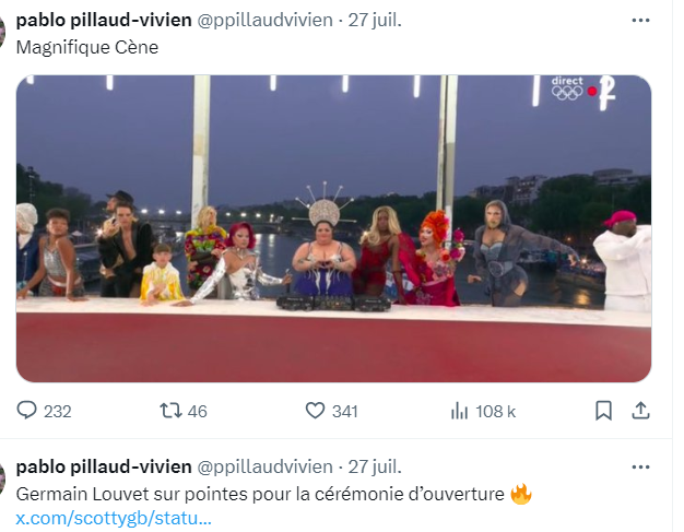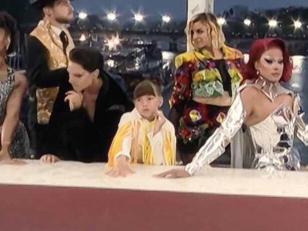 Pendant la "Cène" dégénérée de l' ouverture des JO, le mec en noir qui regarde l'enfant fait signe de lui trancher la gorge! Bande de psychopathes! ! pic.twitter.com/anN3SInPQ8
