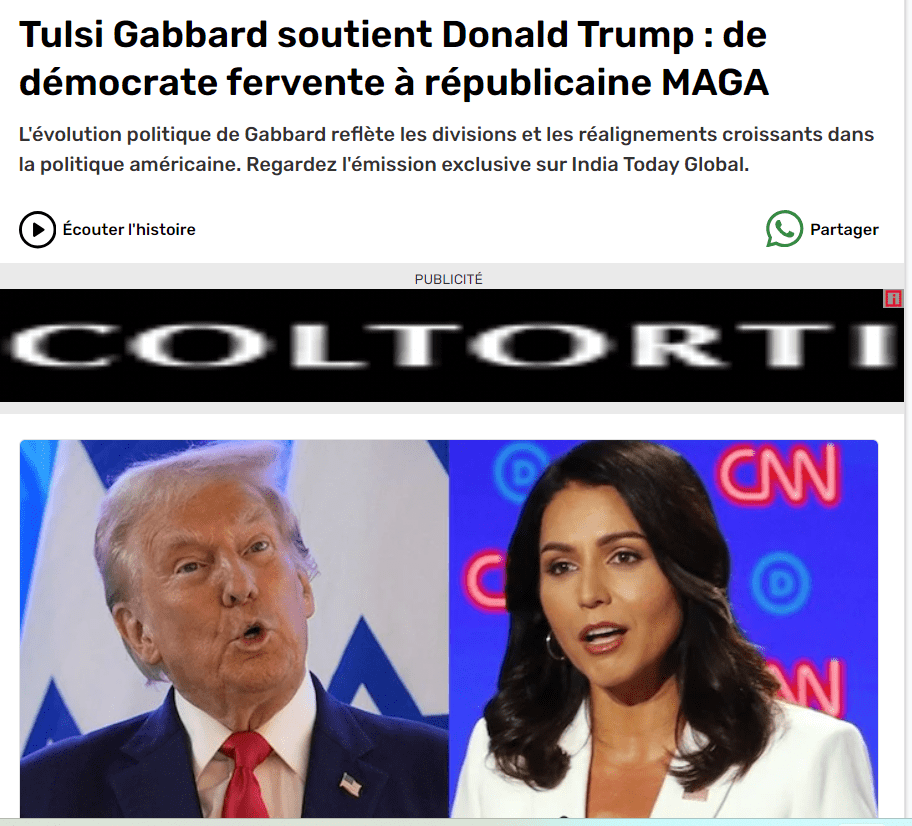de Donald Trump à la présidence. Gabbard a été élue à la Chambre des représentants d’Hawaï de 2002 à 2004, où elle a servi comme spécialiste de l’armée américaine auprès de la Medical Company en Irak, obtenant le grade de lieutenant-colonel. Elle est revenue siéger au conseil municipal d’Honolulu de 2011 à 2012 et a été élue à la Chambre des représentants des États-Unis de 2013 à 2021, notamment en étant nommée vice-présidente du Comité national démocrate de 2013 à 2016. Elle a démissionné de ce poste pour soutenir la campagne de