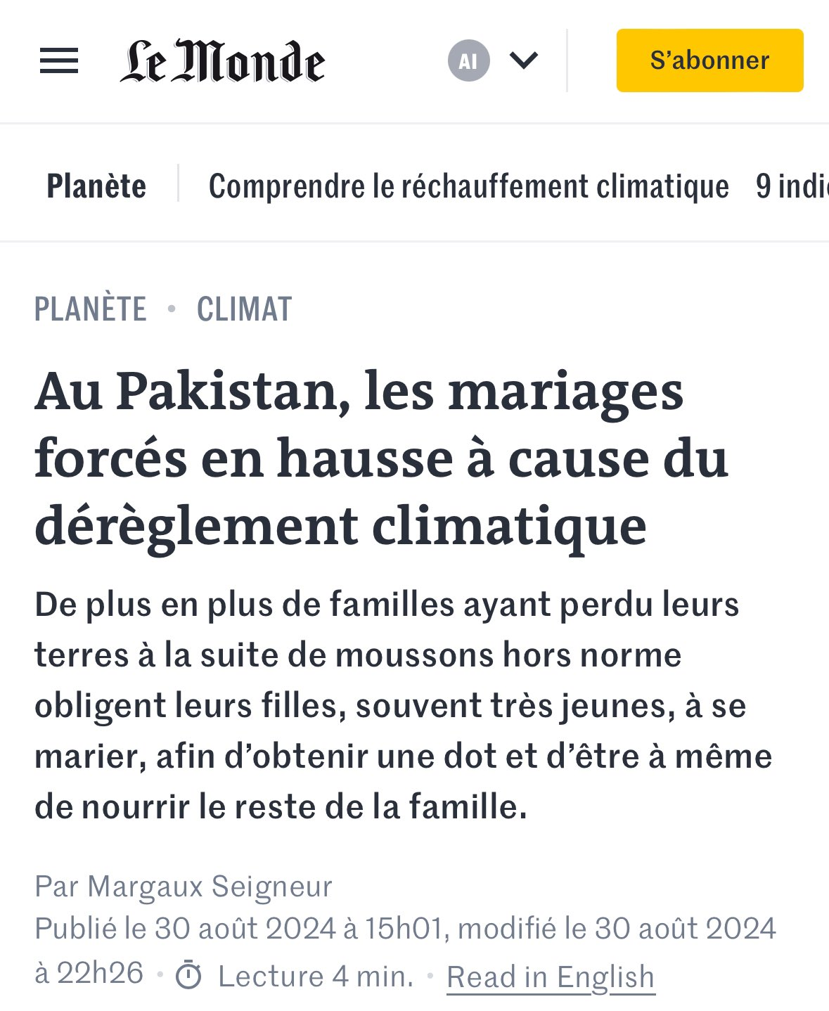 Il y a un problème de mariages forcés au Pakistan qui n’a rien à voir avec le changement climatique