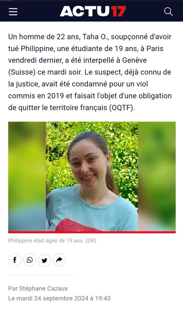 Le suspect de l’assassinat de Philippine, Taha O., Marocain sous OQTF, a été condamné à 7 ans de prison pour un viol commis en 2019. Jugé et incarcéré en mars 2022, il a été remis en liberté cette année, donc deux ans plus tard. Sans expulsion. Mais la justice n’est pas laxiste.