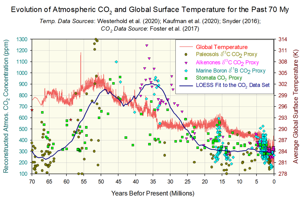 Une nouvelle étude de Judd et al. (2024 : https://science.org/doi/10.1126/science.adk3705… ) affirme que l’atmosphère CO2 contrôlait le climat du Phanérozoïque au cours des 485 millions d’années passées. Cependant, leurs propres données publiées sur GitHub (https://github.com/EJJudd/PhanDA/blob/main/5_Outputs/PhanDA_GMSTandCO2_percentiles.csv… ) réfutent cette affirmation.