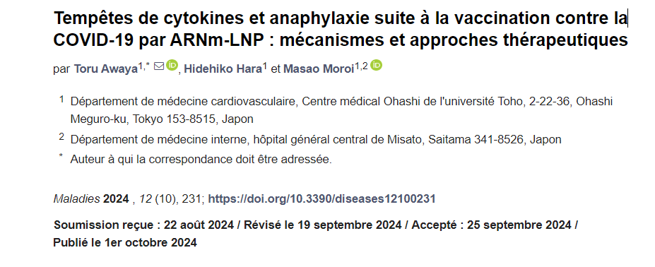 Dans ce nouvel article du Japon examinant les réactions anaphylactiques aiguës du vaccin contre la covid (ARNm), il est indiqué comme un fait que ces réactions se produiront avec le vaccin à ARNm auto-réplicatif introduit au Japon. https://mdpi.com/2079-9721/12/10/231