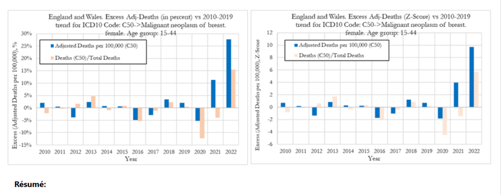 Une étude britannique d’octobre 2023 a examiné la mortalité par cancer chez les 15 à 44 ans. Il s’agit de personnes très jeunes pour qui le cancer était auparavant une cause rare de décès. Pour le cancer du sein chez la femme, il a été démontré qu’il y avait une augmentation de 28 pour cent des décès par cancer en 2022. Les chiffres du cancer du pancréas étaient encore plus alarmants : on a enregistré une augmentation des décès de 80 pour cent pour les femmes et de 60 pour cent pour les hommes. En outre, une augmentation de 120 pour cent des décès chez les hommes causés par le cancer de la peau noire (mélanome) a été constatée.
