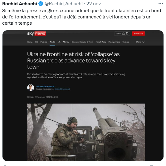 Des propos en cohérence avec ceux tenus par le ministre des affaires étrangères, Jean-Noël Barrot, en visite à Londres, le 22 novembre. Dans un entretien accordé à la BBC, le 23 novembre, il a appelé les alliés occidentaux à « ne pas fixer et exprimer des lignes rouges » quant à leur soutien à l’Ukraine