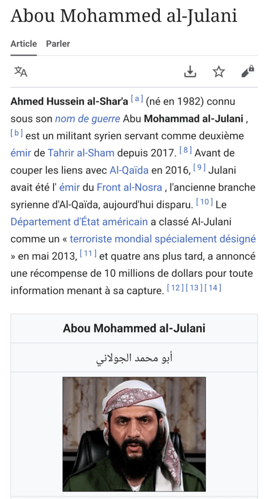 L’assassin de Samuel Paty, Abdullakh Anzorov, était en contact avec HTS, le groupe djihadiste d’Al Jolani, qui vient de prendre le pouvoir en Syrie sous les applaudissements du gouvernement français