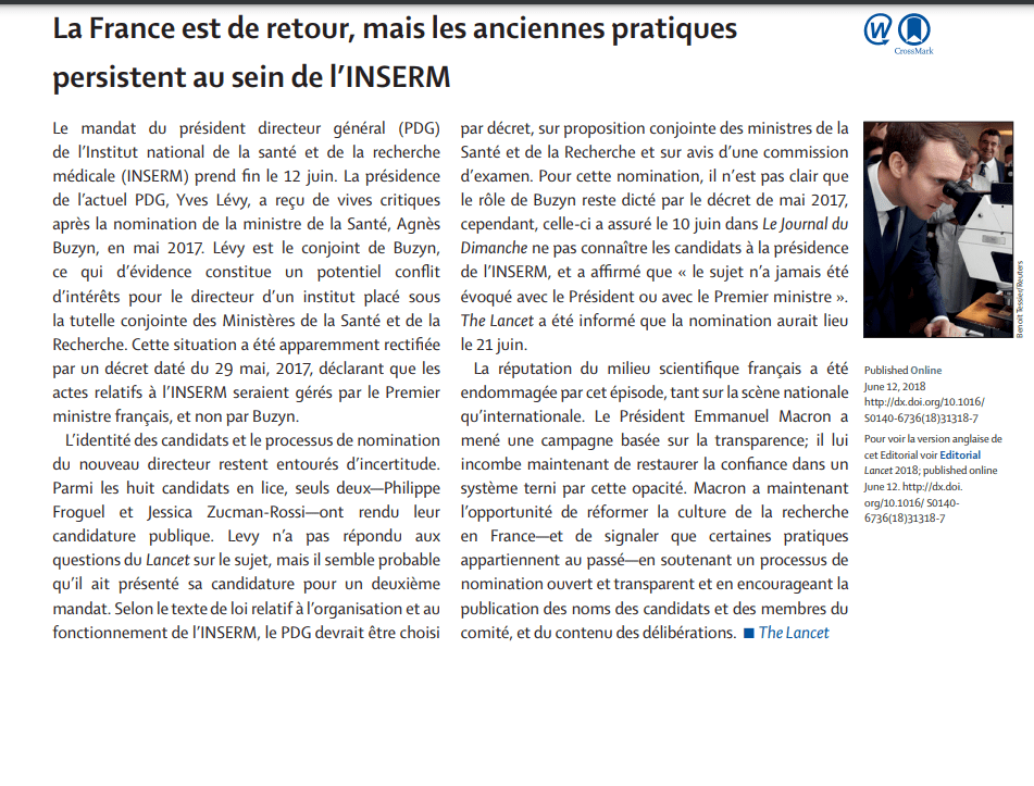 , qui trouve un relais dans le Lancet, qui souligne la grotesque situation de conflit d’intérêts. https://thelancet.com/pb-assets/Lancet/pdfs/16_6_ed_french_translation.pdf…
