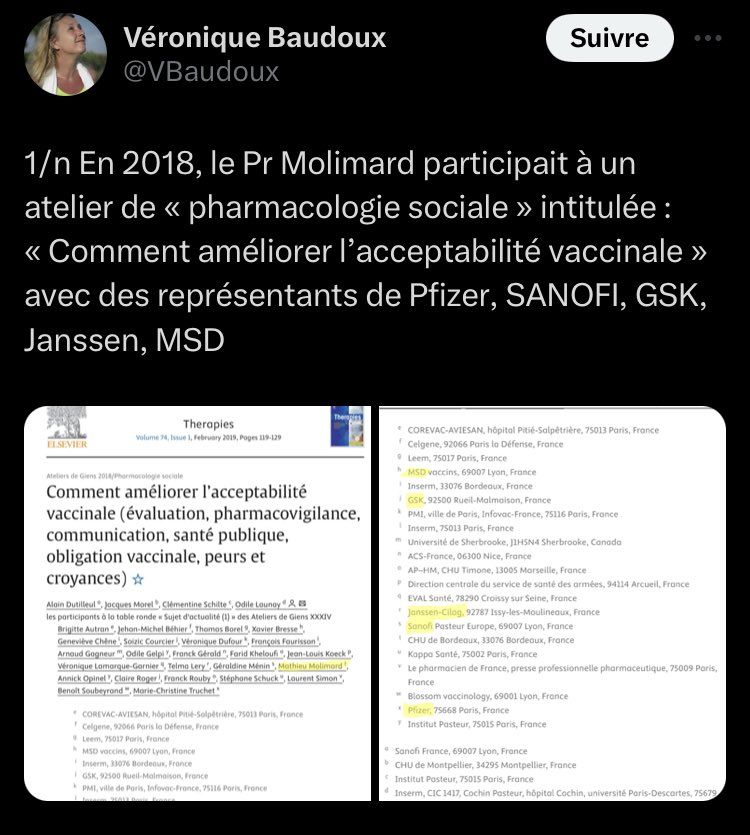 Ce qui apparaît clairement, c’est qu’avant l’épidémie de Covid, le Pr Molimard avait déjà réfléchi avec des représentants de firmes pharmaceutiques aux meilleures stratégies de communication qui permettraient d’influencer les citoyens…