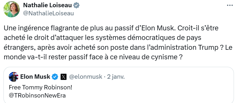 Nathalie Loiseau franchit une fois de plus « le mur du con », elle s’en prend comme le système médiatique à Elon Musk car il juge scandaleux que Starmer , le procureur qui a couvert les viols soit premier ministre