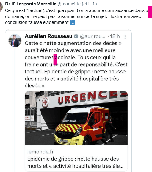 Bon, selon mon expérience personnelle, au 1er de l’an, réunion de famille; enfants petits enfants soit disant grippés (bon quelques uns toussaient !) mais on a absolument rien eu et on n’a pas passé le réveillon dans la cuisine 🙂 . Conclusion la psychose Covid a bien marché, et y’en a qui doivent se dire pourvu que ça continue ! Aurélien Rousseau est un âne et dire qu’il a été dans une ARS, c’est dire le formatage intellectuel.