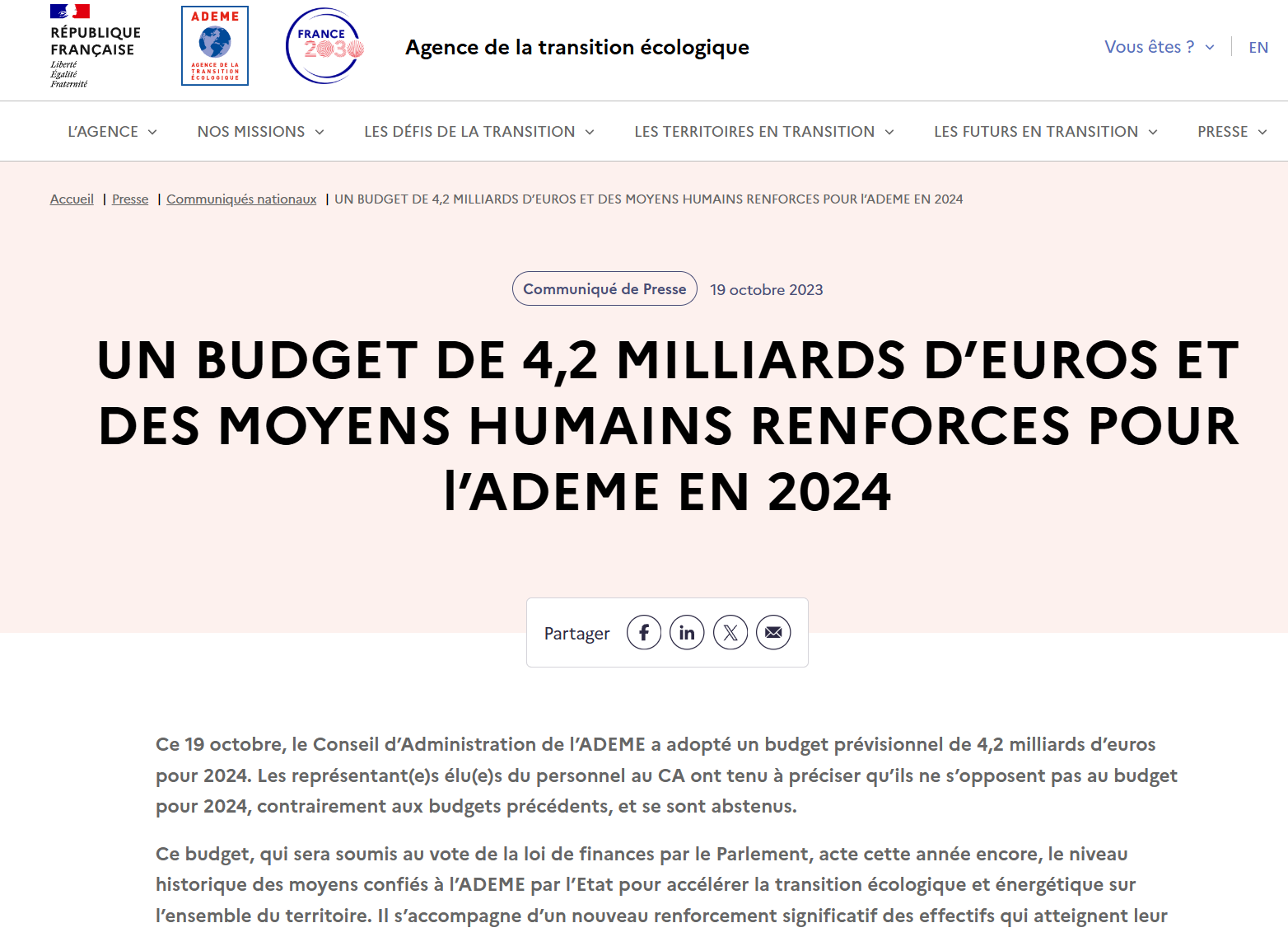 L’ADEME est de mémoire un peu plus vieille (01/01/1992) que l’arrivée aux manette de notre Mozart de la finance.
