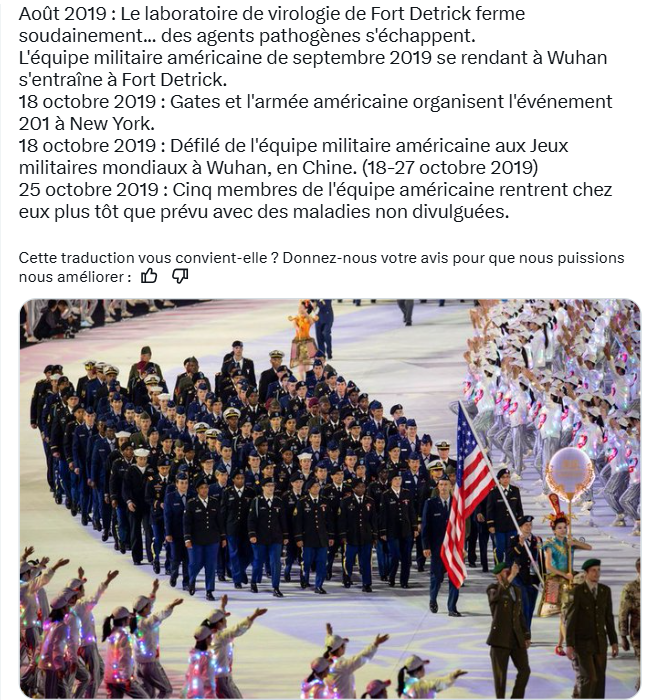 Fuite de labo + circonstances correspondant aux plans sur la comète de l’OMS + collusion Fauci-Gates et quelques autres … Ça suffit amplement à rendre cette fable realiste, non ?
