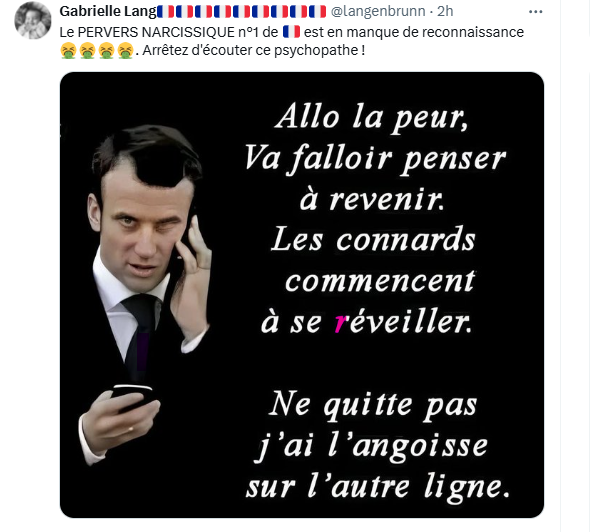Macron revient pour jouer des peurs avec le soutien médiatique de ses milliardaires préférés . Après la peur du Covid, la peur de la sécheresse, la peur de la guerre avec la Russie et même selon Hayer, de la Chine…