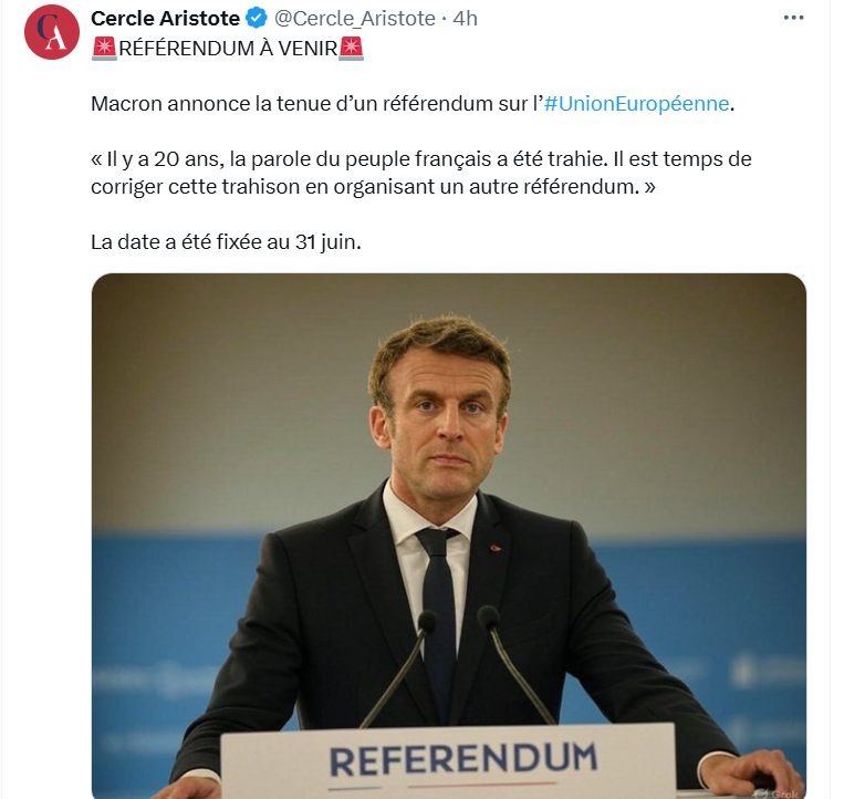 le seul référendum que Macron fera sera pour choisir la couleur du papier où seront inscrites les lois qui vont nous saquer
