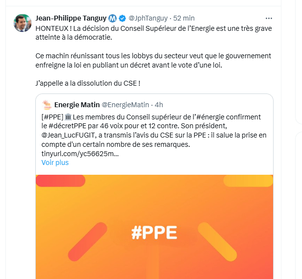 Alors que le Gouvernement a du mal à trouver quelques milliards d’économies, comment admettre de dépenser 300 milliards de trop dans une PPE, qui ne répond pas, par ailleurs, aux impératifs de notre futur électrique ?
