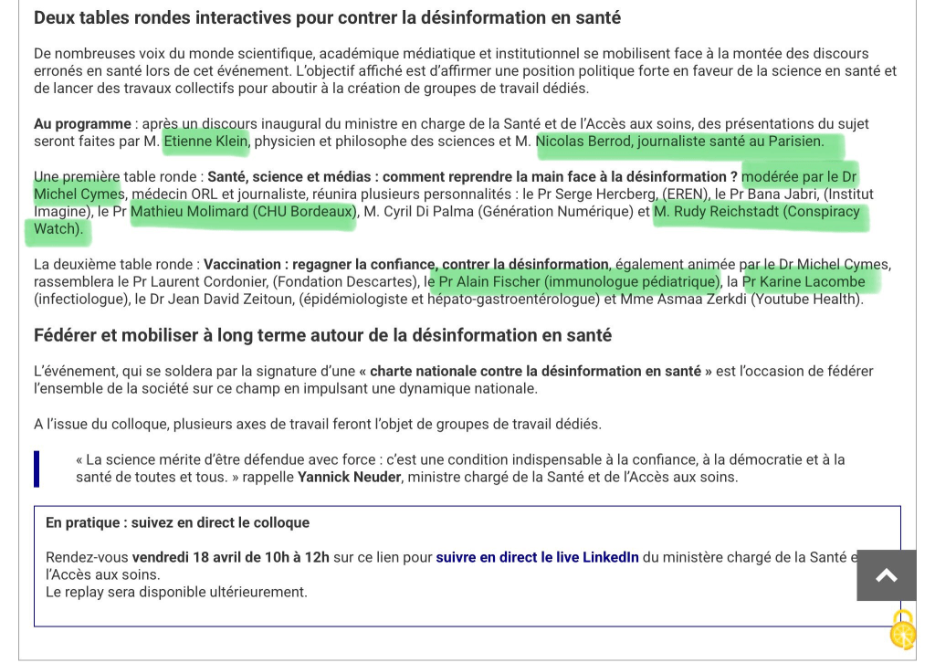 Après être revenu du Conseil européen des ministres de la santé, notre ministre explique qu’il va mettre en place un observatoire contre la désinformation médicale, labelliser les informations et avoir des ambassadeurs et pouvoir utiliser l’Arcom.