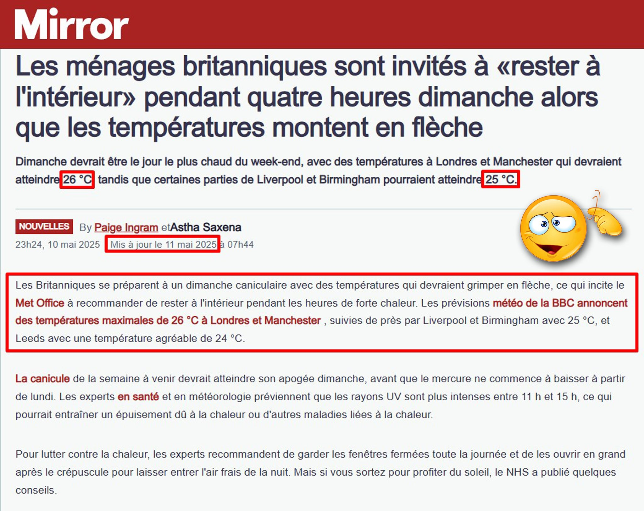 Les médias, en quête d’alarmisme, demandaient aux britanniques de se confiner aujourd’hui car les #températures devaient atteindre 25°C.