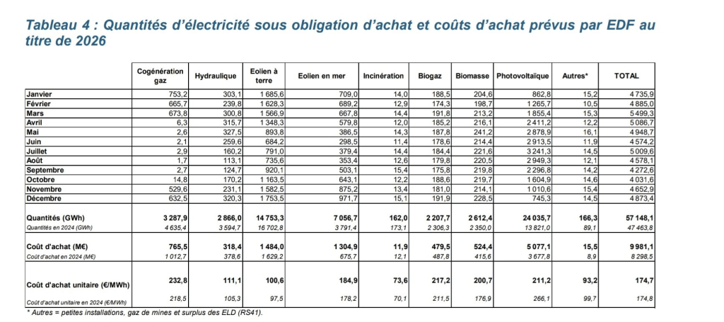 publie les charges des énergies intermittentes Solaire 211 euros le MWh Éoliennes en mer 185 euros le MWh Éoliennes terrestres 100 euros le MWh Total ENR : 7,8 milliards en hausse de 30% en 2026 La facture va augmenter… Source