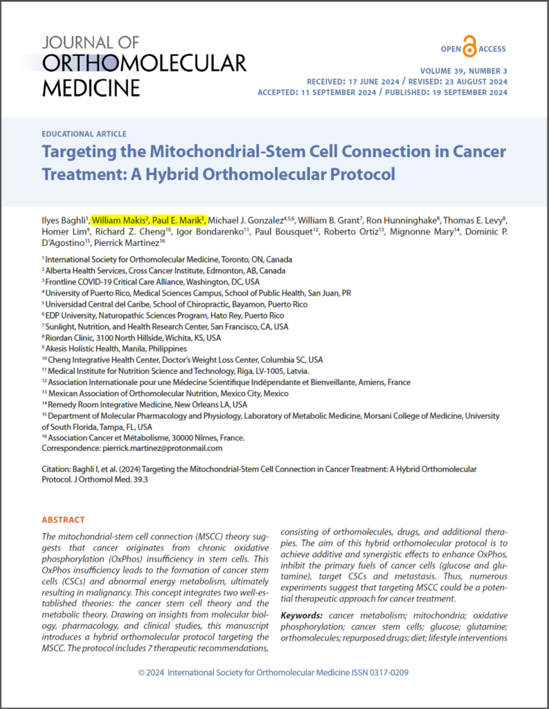 L’avenir du traitement du cancer commence MAINTENANT. Je remercie les auteurs principaux, Ilyes Baghli et Pierrick Martinez, pour leur travail incroyablement inspirant, le Dr Paul Marik du FLCCC pour ses travaux approfondis sur les médicaments réaffectés, ainsi que tous les coauteurs qui ont travaillé dur pour donner vie à cet article.