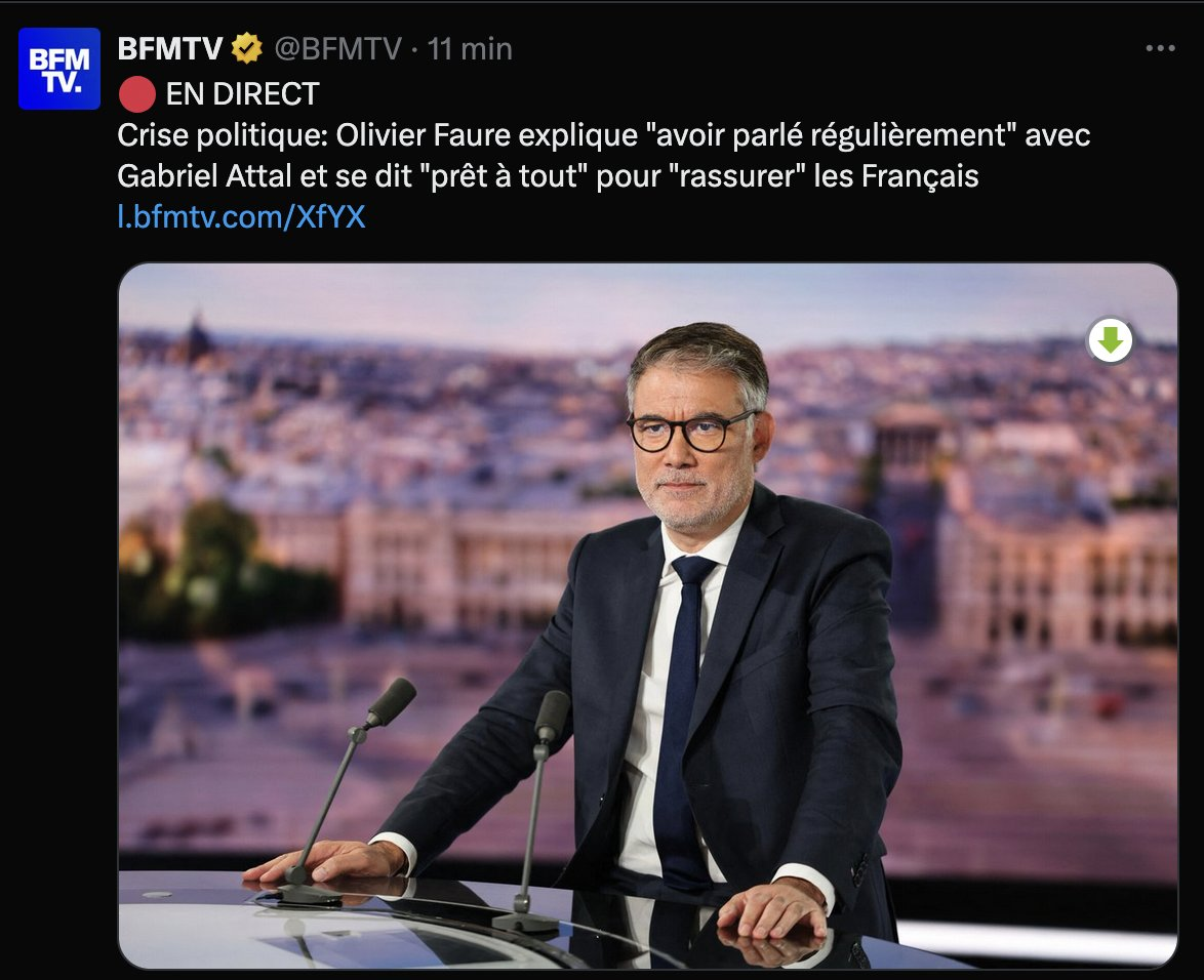 "Comme beaucoup de Français, je ne comprends plus les décisions du président. Il y a eu la dissolution et des décisions qui donnent le sentiment d'une forme d'acharnement à vouloir garder la main."pic.twitter.com/p92VHuRIYF