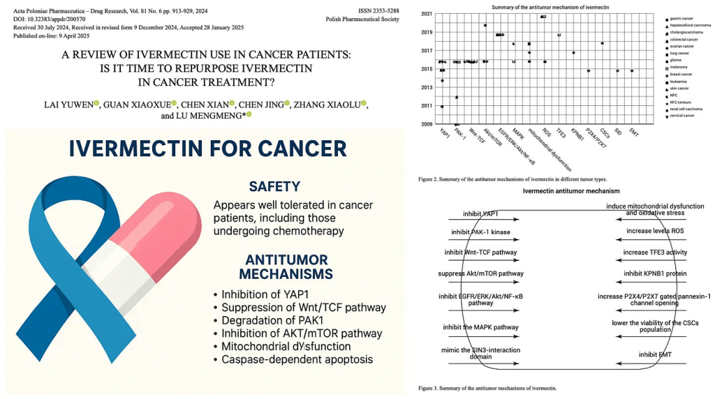 La plus grande étude sur l’ivermectine et le cancer à ce jour révèle 14 mécanismes anticancéreux distincts — et aucun problème de sécurité Signes de rémission et de stabilité tumorale 36 patients atteints de cancer –