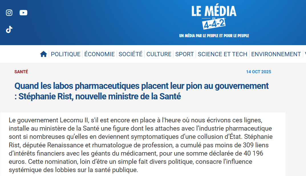 5 Responses to Quand les labos pharmaceutiques placent leur pion au gouvernement : Stéphanie Rist, nouvelle ministre de la Santé