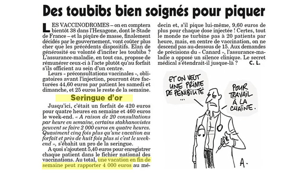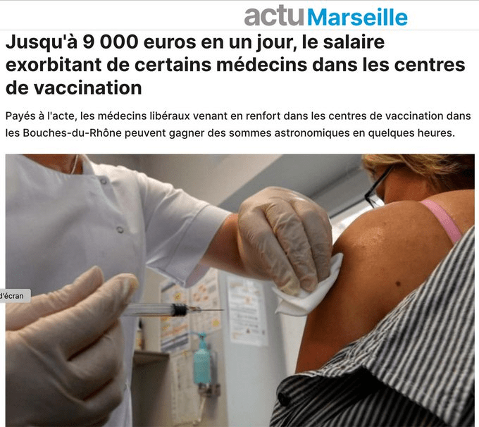 Les médecins touchaient jusqu’à 3000 € pour 4 h de « travail » en centre de « vaccination » COVID. Pendant qu’on perdait nos boulots pour dire la vérité. Et la vérité s’écrit souvent seul, tard dans la nuit; dans la journée il fallait bosser pour bouffer. Pourtant je les plains