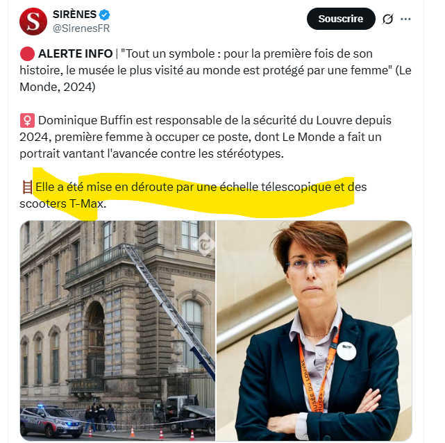 C’est encore pire que ce que je croyais : Copinage et entregents (Macron…) Laurence des Cars ( petite fille de l’écrivant Guy des « gares » » comme on disait si je ne trompe) vivant en couple avec Dominque Buffin sa chargée des sécurités , « Dominique Buffin est entrée dans l’administration publique d’État en tant qu’officier de police en 2001. Après un passage par les services de renseignements..; et bla bla bla ! Deux LGBT sans réelle compétences chargées du Louvre; On croit rêver. « Les Jeux olympiques lui ont offert une formation accélérée. » Ben voyons.