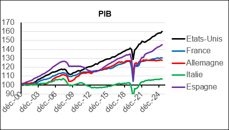 Rem: l’industrie est à un niveau plus bas en % du PIB en France qu’en Italie et en Allemagne. Mais elle s’effondre partout et souvent plus vite qu’en France. En Italie, c’est le PIB qui s’effondre entraînant l’industrie à la baisse. En France, c’est l’industrie qui baisse entraînant l’ensemble de l’économie. Les pays n’ont pas le même mode de fonctionnement.