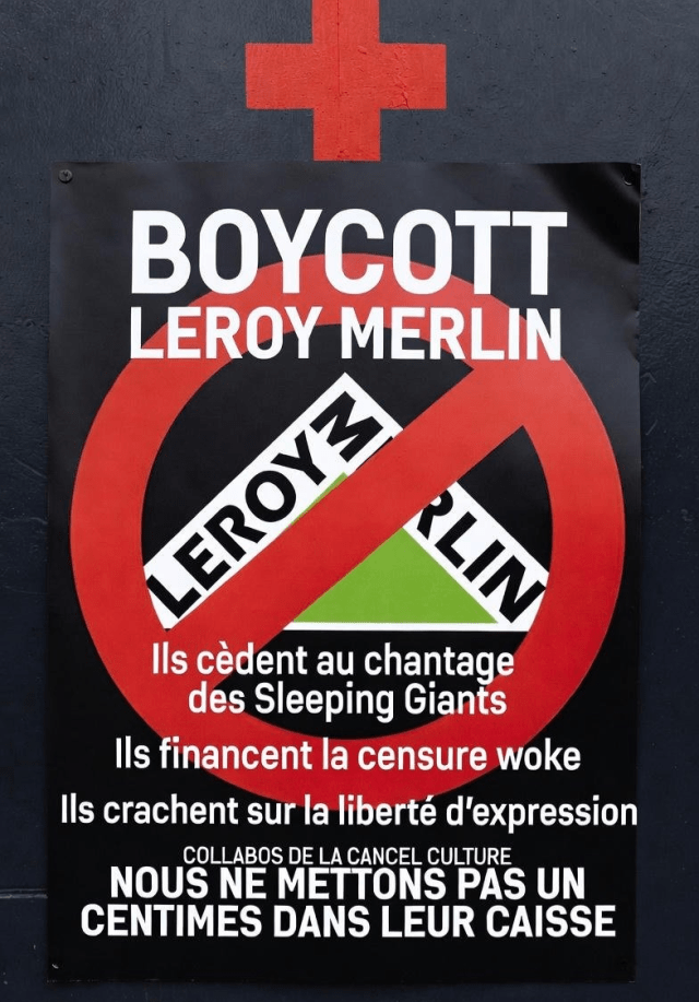 Leroy Merlin a été interpellé ce lundi par le collectif Sleeping Giant, qui a pour objectif de lutter contre « le financement des discours de haine ». « Votre pub apparaît sur le site abject Frontières média obnubilé par l’immigration, qui vend du merch avec le slogan xénophobe du FN/RN et de Génération Identitaire et qui est accusé de diffamer des ONG de défense des droits humains. Est-ce OK? », a lancé sur X la branche française de ce collectif WOKE d’extrème gauche né en 2016 aux États-Unis.