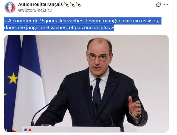 Esr ce que ça étonne encore quelqu’un tout ça ? Ca a fonctionné en système de « servitude volontaire » pendant la Covid et ils recommencent … Sauf que les paysans se battent pour leur avoirs et beaucoup pour la vie de leurs bêtes et qu’ils ont la sympathie d’une bonne partie de la population, voire de quelque médias mais le reste est formaté à la terreur, l’ignorance et la soumission. La seule chose que je déplore est : Où étaient ils pendant les manifestations de Gilets Jaunes, on ne les a pas vu car malheureusement ils sont à part et égoïstes pour la plupart, seuls leurs intérêts comptent ( je les connais bien ayant travaillé dans ma jeunesse dans une Coopérative Agricole et je les livrais…) et pour moi, j’ai de la sympathie pour les éleveurs qui aiment sincèrement leurs troupeaux et surtout pour ces malheureuses bêtes qui ne sont en rien coupables de la stupidités des hommes. Arrêtez le massacre !