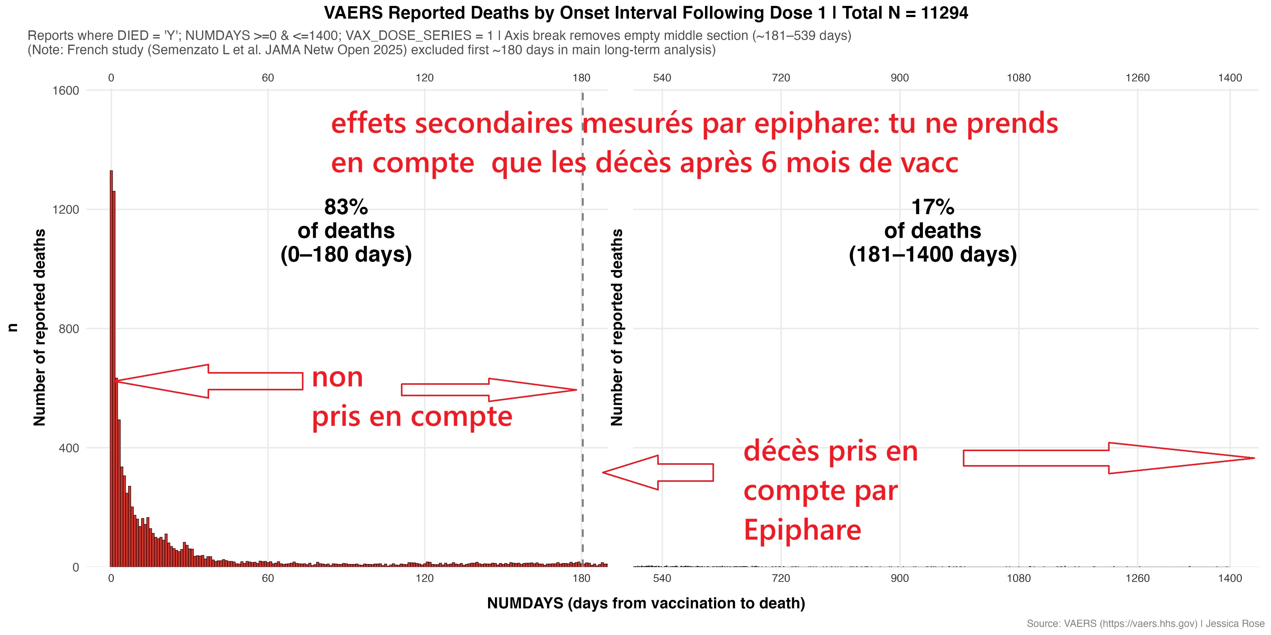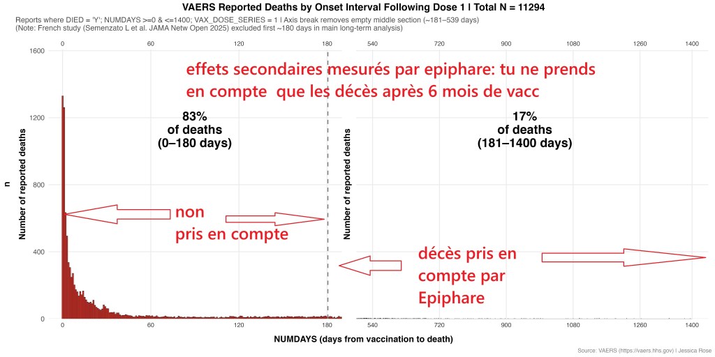 C’est intéressant, car cet article porte sur la mortalité et, selon le VAERS, 83 % des décès associés à la vaccination ont été signalés dans les six mois suivant la première injection. Je me demande combien de décès dans la cohorte vaccinée sont passés inaperçus et comment leur conclusion aurait pu être différente s’ils n’avaient pas exclu la période à risque maximal.