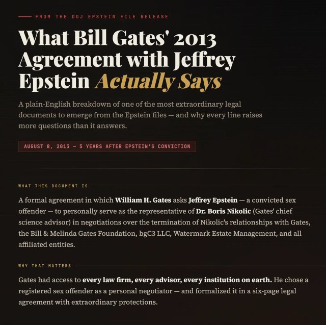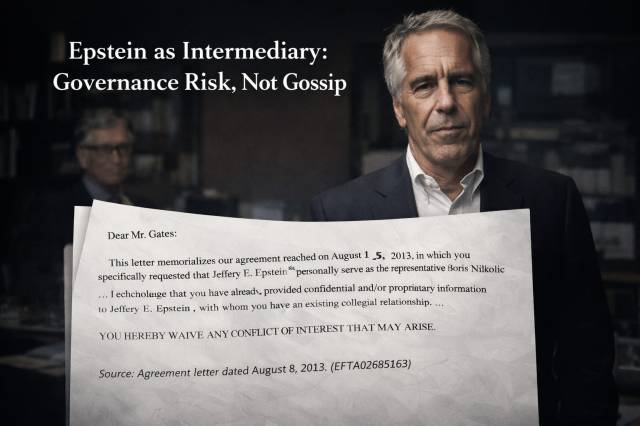 Le problème ne réside pas seulement dans l’implication d’Epstein, mais aussi dans le fait que des institutions aux ressources illimitées l’aient choisi à maintes reprises comme intermédiaire – malgré sa condamnation – alors que d’autres options ne manquaient pas . JPMorgan comptait des milliers de conseillers en gestion de patrimoine. La Fondation Gates employait plus de 1 500 personnes. Boris Nikolic aurait pu engager n’importe quel cabinet d’avocats du pays. Ils ont choisi Epstein – et ils ont continué de le choisir, année après année, de 2011 à au moins 2017. Ce schéma révèle une défaillance de gouvernance, et non une coïncidence.