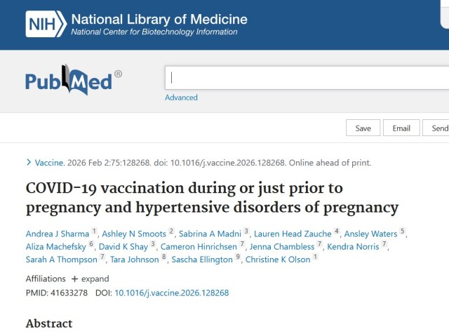 Oui, cette publication fait référence à une étude réelle du CDC publiée en 2026 dans la revue Vaccine (disponible sur ScienceDirect et PubMed sous le titre approximatif : « COVID-19 vaccination during or just prior to pregnancy and hypertensive disorders of pregnancy »).