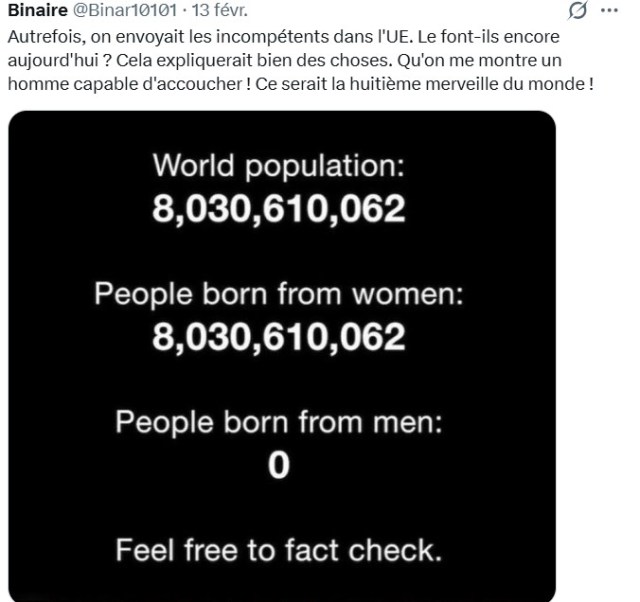 n amendement proposé lors d’une session plénière du Parlement européen (probablement début 2026 ou fin 2025, d’après les sources récentes et le contexte du lien fourni). Cet amendement, défendu notamment par des députés du groupe ECR (Conservateurs et Réformistes européens), stipulait que « seules les femmes biologiques peuvent tomber enceintes » (ou des formulations proches comme « only biological women can get pregnant and bear children »).Le résultat du vote sur cet amendement a été :