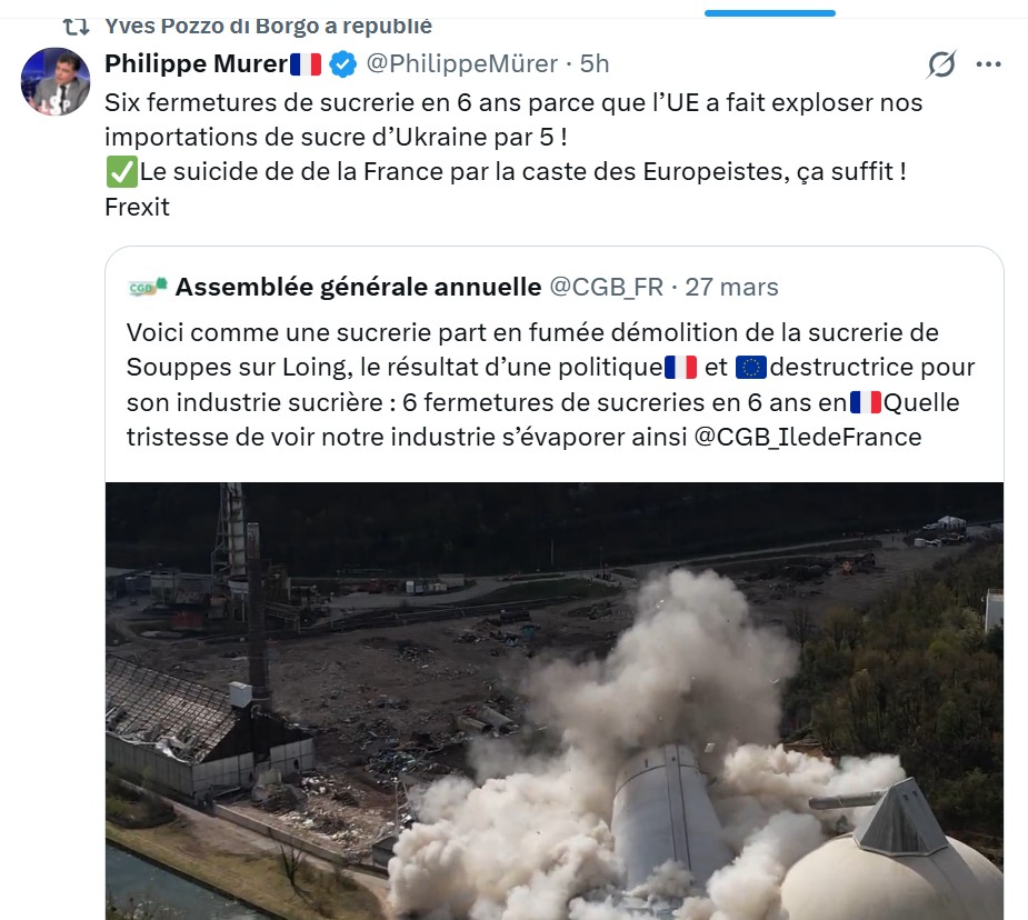 Les producteurs français et européens pointent la surtransposition des normes et le manque de réciprocité dans les accords commerciaux. L’UE importe massivement tout en imposant des contraintes strictes à ses agriculteurs.En résumé, ton constat est fondé : les importations ukrainiennes ont « explosé » et ont aggravé une filière déjà fragilisée par la libéralisation et la concurrence internationale. C’est un exemple classique de politique commerciale UE qui priorise la géopolitique (soutien à l’Ukraine) et le libre-échange au détriment de secteurs stratégiques ruraux, avec des conséquences concrètes sur l’emploi et la souveraineté alimentaire.
