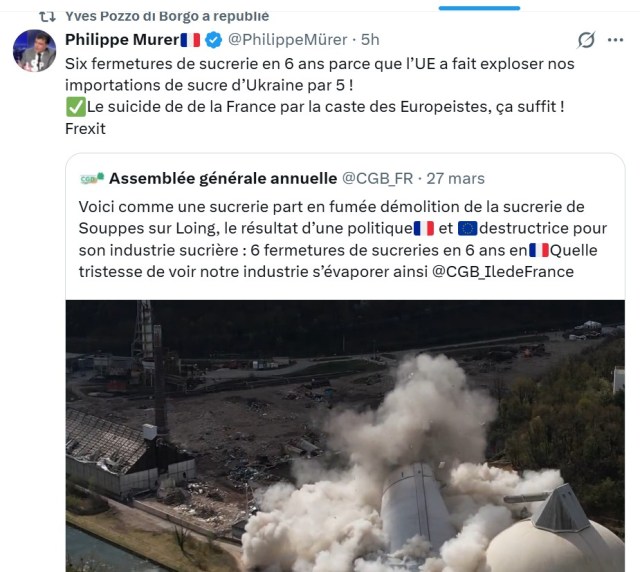 Bien entendu, pas de droits de douane ni de quotas pour « soutenir l’Ukraine »… Mais que soutient notre pays avec ça ? Les bénéfices des importateurs qui travaillent avec des usines dont la main d’oeuvre est beaucoup moins chère qu’en France.