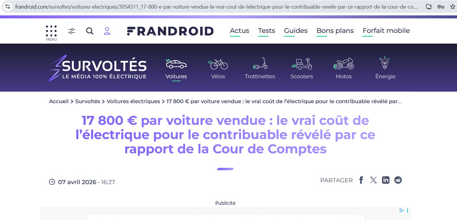 17 800 € par voiture vendue : le vrai coût de l’électrique pour le contribuable révélé par ce rapport de la Cour de Comptes